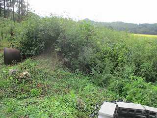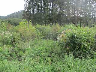 | 1郭背後の堀切。 | 1郭内部。どうにもならないほどのヤブである。 |