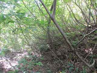 次に林道が北側にカーブしたところの先は、林道そのものが横堀状になっている。
