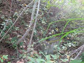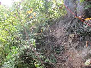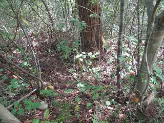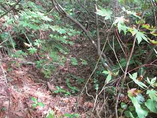 | 城域内に入ってきた。城の切岸。 | 林道の上に横堀がある。 |