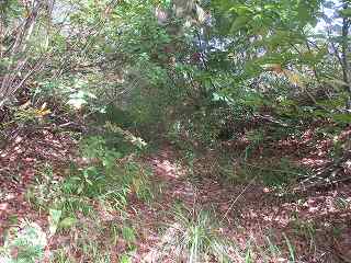 林道は1郭の側面部を削りながら西方の尾根に接続していく。1郭の西側には堀切が入れられていた。