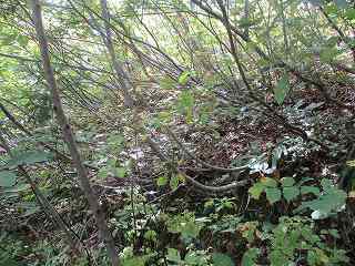 この辺りからヤブもひどくなってくる。雪国のヤブらしく、逆茂木状の低木が多数生えていて、まともに歩くこともできない。これだから雪国のヤブは嫌になってしまう。
