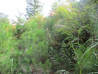 作業林道とはいえ、すっかりヤブ化が進んでいる。9月のこの時期ではヤブ漕ぎをしているのと全く変わりのない状況であった。
