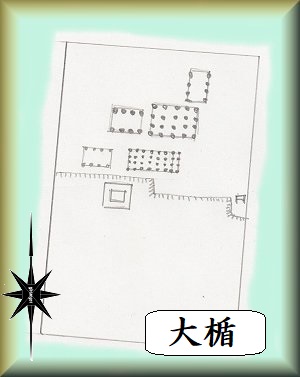 手持ちの図面を見ると、郭は南側に向かって細長く延びていたようだが、高瀬川の改修によって、南側の一部が削り取られているという。