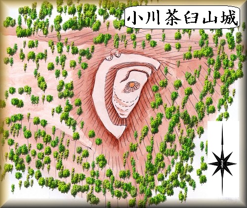そんなわけで、城内に入って行くことができなかった。残念! 参考までに『山口県中世城館遺跡総合調査報告書』(長門国編)および城郭放浪記の図に基づいた鳥観図を掲載しておく。