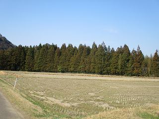 地形図を見てみると、田万川に臨む城の東側は急峻な地形になっているが、西側は台地続きになっており、広大な水田地帯となっている。こちら側からなら比高20mほどである。登るのなら、こちら側からが簡単に決まっている!