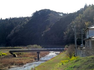 小川茶臼山城は、田万川と支流が合流する地点の近くにそびえる比高50mほどの山稜に築かれている。