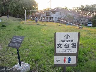 女台場は菊ヶ浜から50mほど内陸に入り込んだ市街地の中に埋もれている。周囲は宅地が密集しており、運転には注意が必要だが、女台場は公園となっており、東側には駐車できるスペースもあるので、車はそこに停めておくことができた。トイレも設置されている。