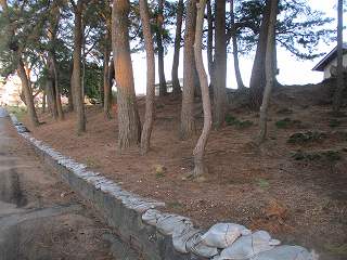 現状では幅広の土塁が東西に長く残されているだけである。この上にあったと思われる砲台の様子は分からない。