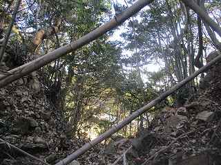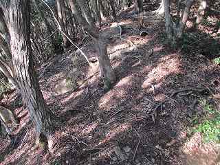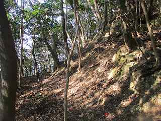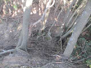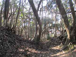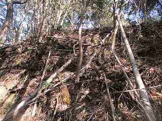 竪堀。 | その先の尾根に4本の堀切がある。 |