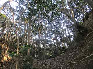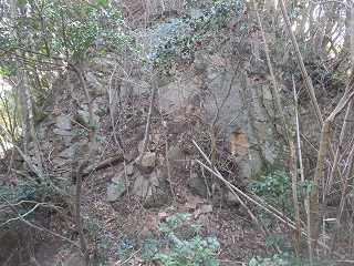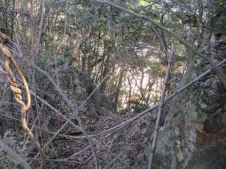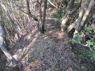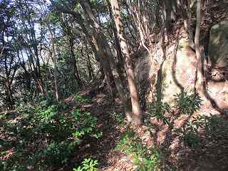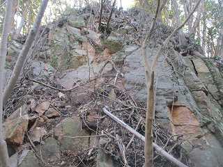 岩盤堀切の5郭側の城塁。よく降りてこられたものだ。 | 岩盤堀切。 |