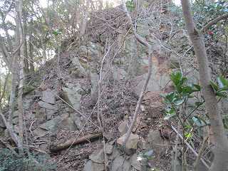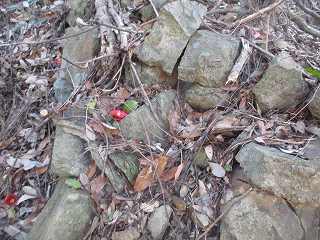 土塁側面部の石積み。 | 5郭北側下の腰曲輪。 |