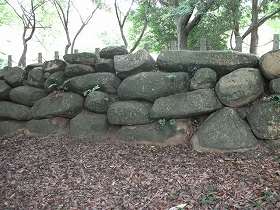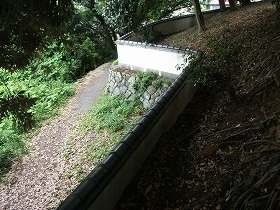 東側の城塁沿いにある石垣。 | 北側の土塀と石垣。 |