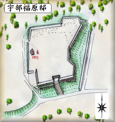 上宇部小学校の北西500mほどの所にある福原史跡公園が宇部福原邸の跡である。比高6mほどの低い台地の東側部分を利用したものである。