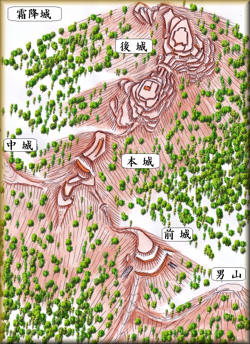 *リクエストに応じて、現地案内板の図を基にして作成した鳥瞰図。この城にはまだ訪れていない。