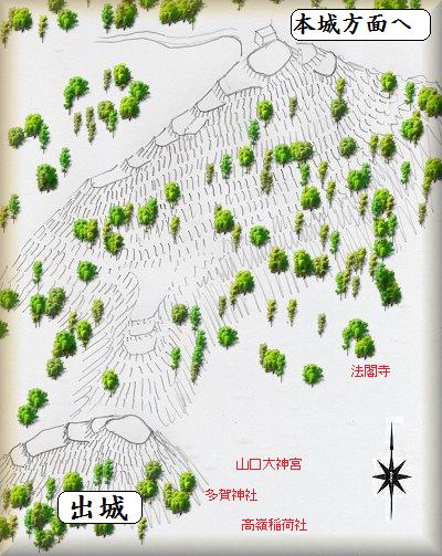 このようにわりと単純に郭を配置しただけの山城であるが、郭の面積を合計するとかなりの広さがある。相当な人数を篭城させることも可能な城であり、大豪族であった大内氏の詰めの城としてふさわしいだけの規模を有しているといってもいいであろう。