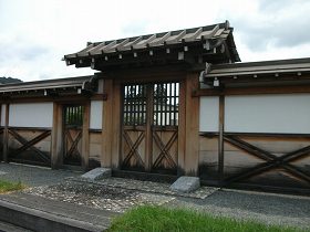 藩庁門の脇にある土塁と堀。 | 藩庁の門。 |