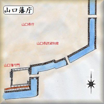 山口県庁のある場所が山口城の跡である。長州藩は、幕府への遠慮もあって、日本海側で交通不便な萩城を居城としていたが、幕末になって、交通の要衝であるこの地に実質的な藩庁を置くに至った。