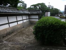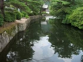 藩庁の門脇にある土塀。 | 東側に続く堀。 |