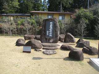 城址碑。 | 山口中川原御茶屋の案内板。 |