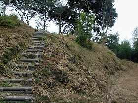 | 林道途中の腰曲輪。 | 1郭城塁。 |