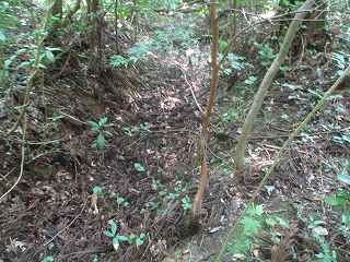 上記の書の図では、先端の下に畝状竪堀が描かれている。佐渡の城で畝状竪堀のある城を見たことがない。本当にあるのかと思って、その辺りを歩いてみた。すると確かに竪堀は存在していたのだが、畝状に連続したものではなかった。探した場所が違っていたのであろうか。