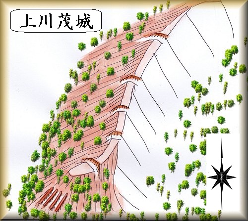上川茂白山神社の東側の比高30mほどの山上にある。尾根上を堀切で区切り、5郭ほどがある。