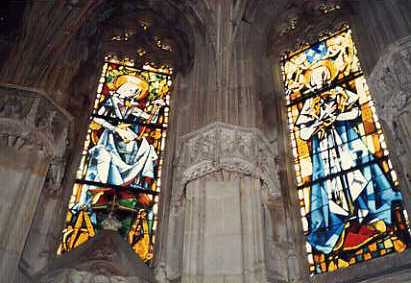 城内の片隅に建つ、聖ユベール礼拝堂の中のモザイクガラス。この写真ではよく分からないが、ここのモザイクは、絵にふっくらと厚みがあって、立体的に描かれているのが特徴である。