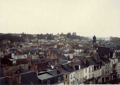 アンボワーズの町並み。城壁の上から見た風景である。中世の雰囲気をよく残している。ヨーロッパの建物は非常に寿命が長く、700年も前のジャンヌ・ダルクの生家が今でも残っているし、アンボワーズの城内にも、レオナルド・ダ・ヴィンチの終の棲家となった家などが残されていたりする。