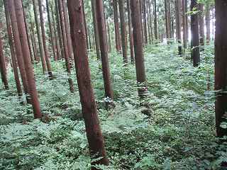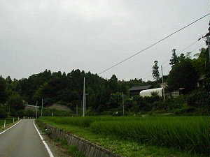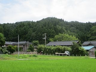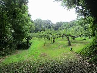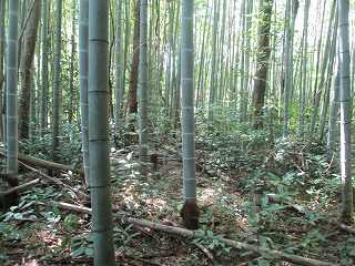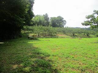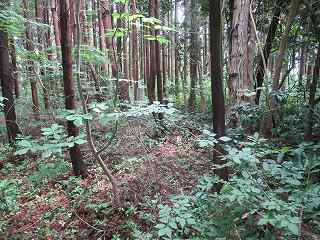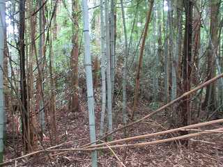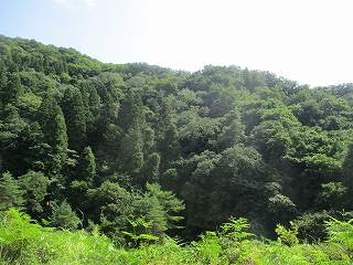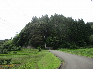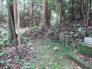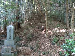 | 南側のお宅の背後の山林が城址。 | 1郭下の墓地。 |