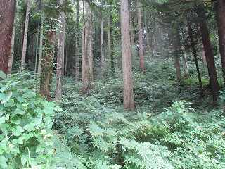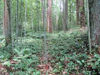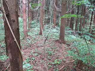 その脇の平場が城址ということになると思うのであるが、平場が続いているだけで、明確に城郭遺構と思われるものを見つけることはできなかった。