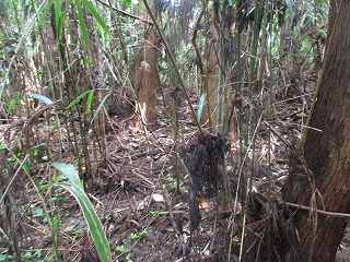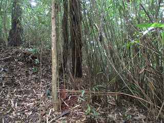 先端近くには城塁が見えていて、そこからが郭であると思われるのであるが、ヤブがひどくて、正確な形状を把握することができない。