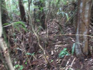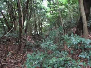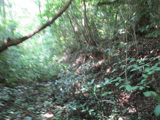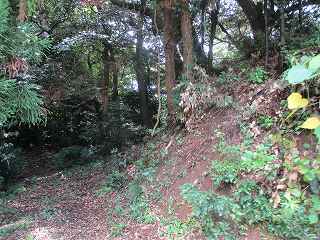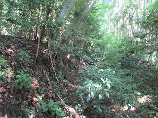 2の畑から南側に進んで行くと、堀切状の地形が見られる。その先は尾根になっており、途中にも何本かの堀切が見られた。