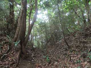 するとすぐに大きな切通しの通路に出会った。切通しは長く、山麓方向に向かって延びていく。