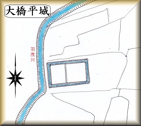 羽茂川が大石湾に注ぐところに大橋と呼ばれる橋があるが、その西側に比高20mほどの独立丘がある。この上が城址である。