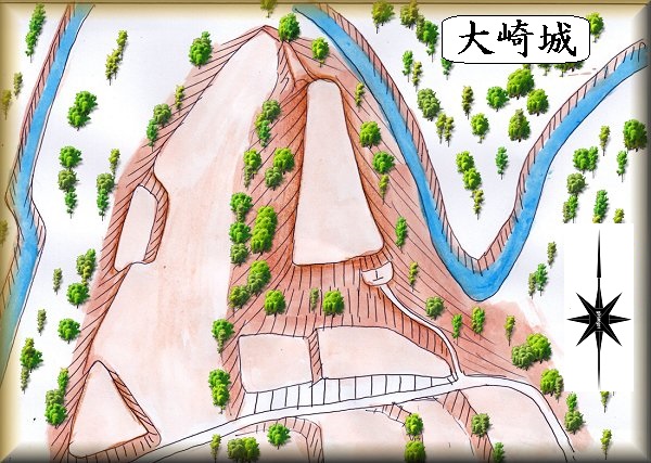 大崎城の位置はここ。羽茂本間氏配下の土豪野沢藤右衛門の城。「城の腰」と呼ばれる。山城。郭、空堀が残るという。