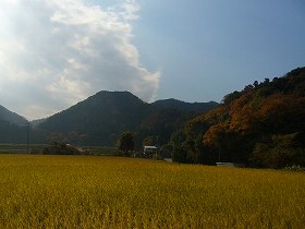 といっても、この尾根の入り口がよく分からず、とりあえず見性寺の脇から三味の集落を抜けていってみた。すると水田地帯に下がっていく辺りから城のある山が見えてきた。そこで、その手前の尾根辺りから取り付いてみることにする。