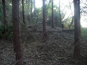 その西側一帯はかなりの面積のある平場となっている。東西70mほどはあり、ここが城の主要部ということになる。面積だけを見ればかなりの人員を収容することもできるかのように思われる。