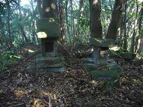 その先はわりとだらだらとした地形で、円墳状の高まりとなっており、その上に大六天社の祠が祭られている。現在は祠が2つあるだけであるが、石段の跡などもあり、本来は他にも建造物などが存在していたような雰囲気がある。ここは城山の最高所であり、城外を監視する場所であったろう。