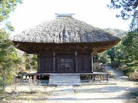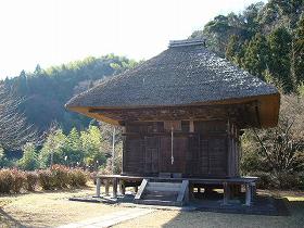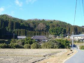 | (以前の記述)平蔵城は、平蔵城は平蔵橋のすぐ西側にそびえる比高60mの平蔵山にあった。橋のすぐ脇から城址に登る道がある。車ではちょっときついが、徒歩でも10分ほどで、城址に辿り着く。写真のような自転車も登れない細い山道を上がると、山頂には一軒の家がある。こにには93才にもなるご老人が、人里離れて住んでいる。仙人が暮らすような場所である。こういうところの一軒家というのも、うーん、すごいなあ・・・。ここから段階的にある平坦地が郭の跡なのであろう。平坦地のいくつかは畑になっている。途中の栗畑で、栗を拾っていたおじいさんに「栗、どうじゃ」と言われてたくさん栗をもらってしまった。この辺の人は、純朴でいい人が多いらしい。 城主は土橋平蔵であるという。伝承によると平蔵は平将門が反乱を起こした承平年間に紀州からこの地へ来たというが、これは眉唾物であろう。ただ、城主は代々土橋平蔵を名乗ってこの城を居城とした事だけは確かである。何代か後の土橋平蔵将経は、城の守護のため、鬼門に当たる城の東北の平坦部に、西願寺を建立した。この寺の観音堂が、いわゆる「平蔵の光堂」と呼ばれる瀟洒なお堂で、国の重要文化財に指定されている。吉沢城の阿弥陀堂とよく似た建物である。 |