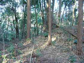 | 1郭の様子。削平はかなり甘い感じ。 | 4の郭にある土塁。 |