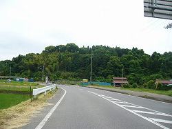 | (以前の記述)大桶城は、葉木城の3kmほど南にあり、葉木城から「うぐいすライン」をずっと南下していくと、城址の麓に到達する。城址は大きく2つの峰に分かれている。北側の比高40mの「城跡山」は頂上部が細長い三角形の平坦地なっており、ここには軍茶利四天王が祭られている。東南の台地の基部との間には空堀がある。 南側の「城廻」と呼ばれる写真の山は、比高はやはり40mほどで、方形の郭と腰曲輪が存在している。郭の周囲には土塁と空堀が巡らされ、郭までの道は切り通しとなっている。この山も台地の基部との間に空堀をもっている。 城主等、城の歴史については分かっていない。付近を歩いていたおばあさんに城について尋ねてみたが、「この辺に城跡があるなんて聞いたことがないよ。わしゃ、ここで生まれて育って80年になるが、そんなことは一度だって聞いたことがねえ」と言われてしまった。そんなにマイナーな城なのか、大桶城よ・・・・。 |