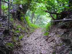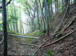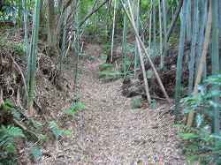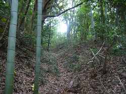 | 大桶城、1郭東側の堀切。深さ2mほどのものである。 | 南側の横堀。と言っても、実際には、ただの通路といった程度の規模である。 |