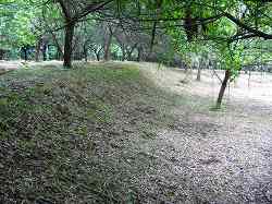 | 1郭はきれいに整地されており、ヤブもない。しかし西側半分は、かなりのヤブである。 | 1郭の北西端にある土塁のようなもの。これも日本軍による改変であろうか。 |