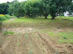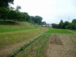 | 1郭北側の城塁。かなり急峻である。 | 1郭西側下の郭。畑になっている。 |