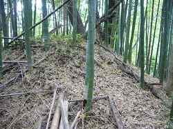 | 郭内部。一段低い腰曲輪を見たところ。 | 土塁。台地基部との間にはけっこう高く積まれている。 |