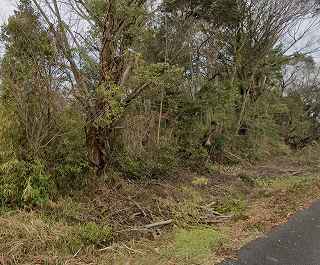 | 館Eの東側の道路沿いにわずかに残る土塁。 | |