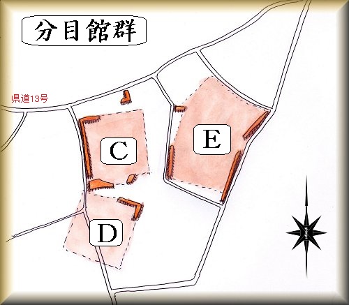 現状では宅地化によって土塁のほとんどは失われてしまっているが、分目要害に関連した館群がここに存在していたことが想像される。