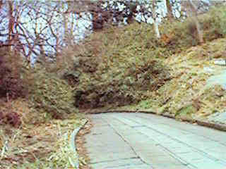 (以前の記述)白船城のあった白船山は、かつては沼地に浮かぶ独立台地で遠くから見ると船のように見えたと言うが、現在は市街地となってしまい、かなり改変されており、遺構らしきものはあまり見られない。写真は、二郭と三郭の間の堀切の跡らしき道である。 |