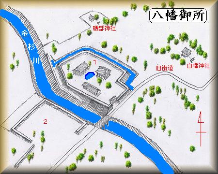 陣屋跡は、八幡宿の駅のすぐ西北のあたりである。かつては土塁や郭の一部が残っていたと言うが、市街地化が激しく、やはり現在では遺構を見ることはできない。