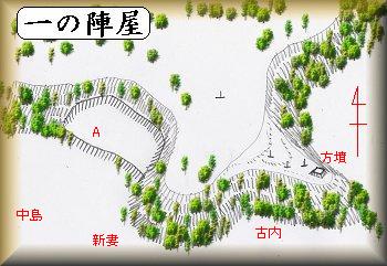 一の陣屋と呼ばれている場所で、口碑・伝承等はないが、何者かの居館跡と考えられる。根木名川に向かって西に突きだした台地上にある単郭の遺構である。郭の片隅に櫓台のような土台があるが、それ以外にこれと言っためぼしい遺構はない。山林化しており、道もない。城址と言っていいのかどうかも分からない。